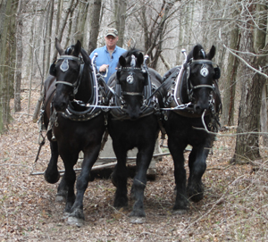 His Percheron draft horses are the true stars of his farm and provide power and companionship for logging, syrup operations, field work.