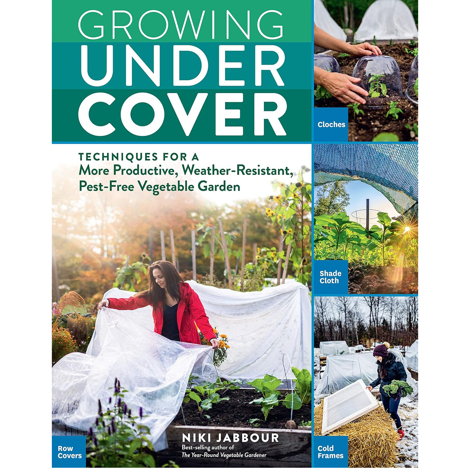 Techniques for a More Productive, Weather-Resistant, Pest-Free Vegetable Garden. by Nikki Jabbour. Jabbour shows how to use small solutions like cloches, row covers, shade cloth, cold frames, and hoophouses, as well as larger protective structures like greenhouses and polytunnels, to create controlled growing spaces for vegetables to thrive. Color photgraphs, charts and illustrations. 216. 8.5 x 11.5 inches. Softcover.Â